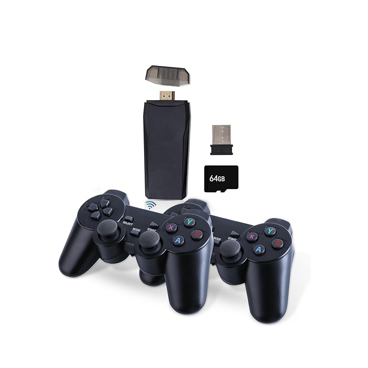 Wireless 2.4GHz Controllers: The package includes two wireless controllers that connect seamlessly to the device using 2.4GHz technology. With no cables to manage, you can game from anywhere in the room, offering both convenience and comfort. The controllers also deliver precise inputs, which is essential for action-packed retro games.